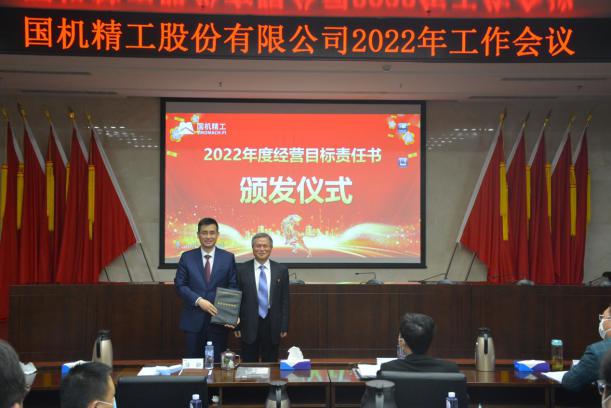 会上,朱峰向蒋蔚颁发了公司2022年“经营目标责任书”,蒋蔚代表公司向各下属企业负责人颁发了2022年“经营目标责任书”。