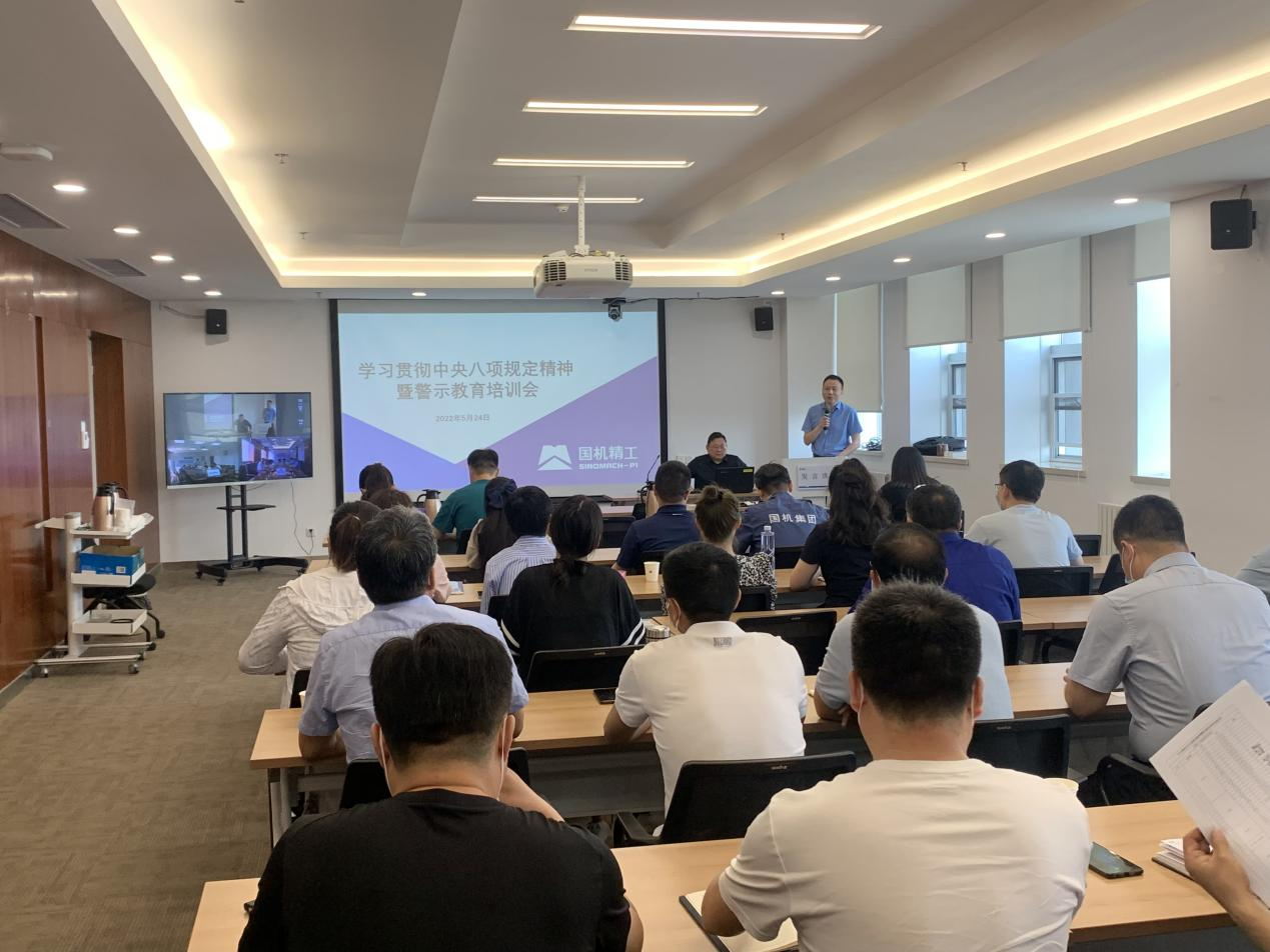 5月24日上午,国机精工举办学习贯彻中央八项规定精神暨警示教育培训会,全面落实中央纪委及集团纪委要求,以案示警、以案明纪,推动全面从严治党向纵深发展。公司纪委书记罗勇在工研所视频参会并讲话,董事会秘书赵祥功主持会议,公司总部及所属企业纪检部门、综合管理部门、财务部门、营销部门等30余人参加会议,工研所、轴研所视频参会。