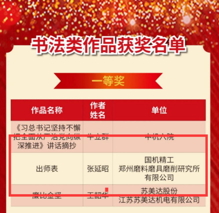 本次“丹青润新风 喜迎二十大”廉洁书画作品征集评选活动,是国机集团2022年“廉洁宣传教育月”活动的重要安排。活动共收集书法绘画类作品投稿共300余份,三磨所在182件书法类作品里脱颖而出,喜获一等奖。
